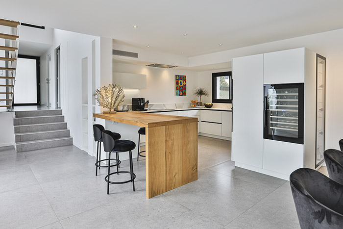 Une cuisine ouverte qui s’intégre parfaitement à l’ambiance de la salle à manger et du salon