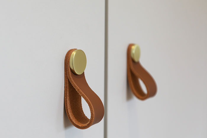 - Bouton Cuir marron clair pastille dorée